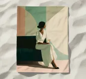 Mescolando toni di metà secolo e grazia moderna, questo pezzo esplora l'intersezione tra forma e solitudine. La palette di colori tenui e la geometria audace riecheggiano la presenza tranquilla della donna, creando una composizione che sembra un jazz visivo, sofisticato e senza sforzo.