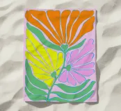 Questa colorata illustrazione mostra fiori stilizzati nelle vivaci tonalità dell'arancio, del giallo, del rosa e del verde. Le linee chiare e le aree di colore armoniose conferiscono al motivo estivo un carattere moderno e allegro. Un'opera d'arte giocosa che irradia leggerezza, natura ed energia positiva.