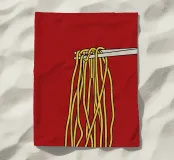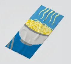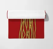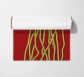 Audace e giocosa, questa illustrazione grafica pop art presenta spaghetti giallo brillante sollevati da bacchette su uno sfondo rosso vibrante: un'eccentrica celebrazione del divertimento, del cibo e del colore.