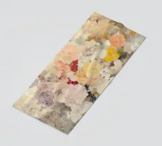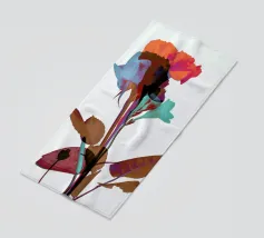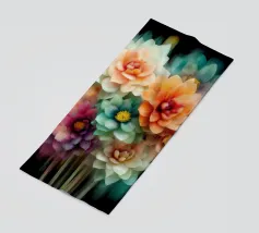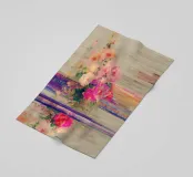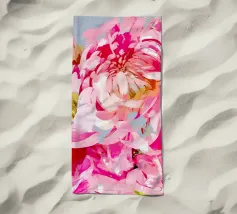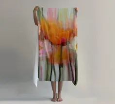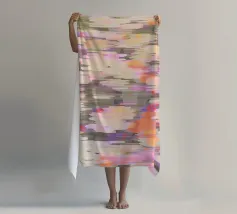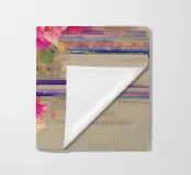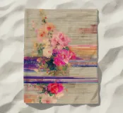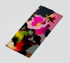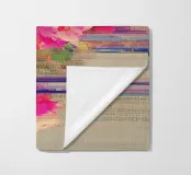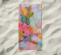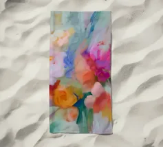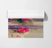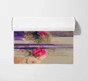 Questa vibrante arte digitale astratta combina colori brillanti e texture glitterate ispirate a motivi botanici. Le strisce orizzontali in rosa, arancione, viola e verde donano nuova energia a qualsiasi spazio abitativo e celebrano la bellezza della natura colorata.