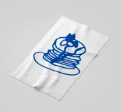 Una pila di pancake conditi con sciroppo e una guarnizione è rappresentata in uno stile minimalista di line art blu. Il design enfatizza la semplicità e le immagini a tema colazione.