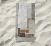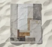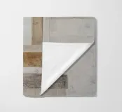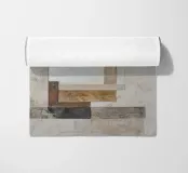 Questo disegno astratto combina elementi industriali con colori terrosi e forme minimaliste. Le texture stratificate di carta e materiali da costruzione, combinate con pennellate, creano un'affascinante profondità e riflettono lo stile boho del design contemporaneo.