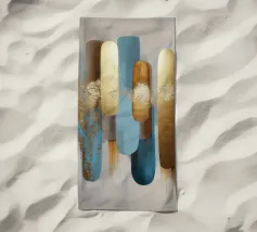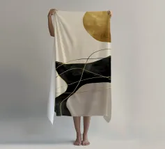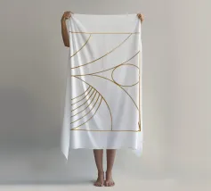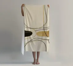 Questa illustrazione astratta combina forme geometriche e linee sottili in un design minimalista che gioca con accenti beige e oro. La disposizione simmetrica e i tratti stretti creano una struttura elegante che presenta elementi vintage e grunge. Perfetta per gli amanti dell'estetica scandinava, l'opera irradia una bellezza senza tempo.