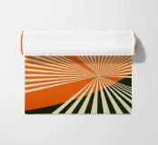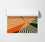 Immergetevi nell'aura luminosa del design Sunbeams. Questo splendido pezzo cattura l'estetica di un giardino giapponese al sorgere del sole in un'interpretazione in stile rétro. Magnificamente progettato, presenta una cascata di raggi di sole che si infrangono attraverso un gruppo di nuvole eteree arancioni, ispirandosi al fascino senza tempo dei tramonti giapponesi. I raggi di sole danzano verso il suolo, creando una presentazione astratta mozzafiato che è allo stesso tempo emozionante e rilassante. Il design mescola le tonalità di una ricca tavolozza di colori, donando calore e vivacità all'ambiente. Le sue tonalità colorate