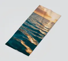 As the golden sun slowly sinks toward the horizon, it bathes the waves in warm hues of orange, pink, and purple. The shimmering light dances across the water’s surface, creating a path of liquid gold that seems to lead straight into the sky. Soft, salty breezes carry the scent of the sea, while gentle waves lap against the shore in a calming rhythm.