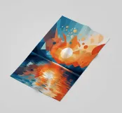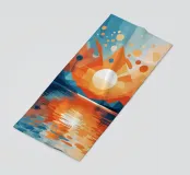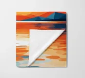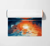 Questa vibrante opera d'arte astratta cattura la bellezza mozzafiato di un tramonto su un lago calmo. Le forme geometriche e i colori vivaci creano un senso di stupore e meraviglia, invitando lo spettatore a immergersi nella scena pacifica. Il riflesso del cielo infuocato sulla superficie dell'acqua aggiunge profondità e tranquillità alla composizione.