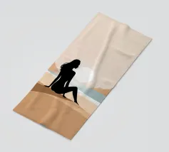 A serene woman gazes over the calm sea as the sun melts into the horizon. The soft light and muted palette make this artwork a symbol of reflection, peace, and evening calm.