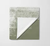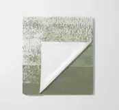 Pittura acrilica con pennellate di colore bianco su sfondo verde salvia e verde oliva.