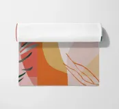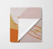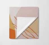 Un'elegante composizione di foglie botaniche stilizzate nei toni tenui dell'arancio, del verde e della terracotta, su uno sfondo rosa e beige per un'atmosfera moderna e terrena.