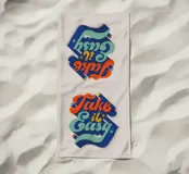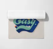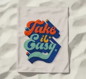 Un vivace disegno tipografico in stile retrò con la frase "Take It Easy" in grassetto, con caratteri ispirati agli anni '70. Il caldo mix di rosso, blu e verde menta con accenti di stelle aggiunge un'atmosfera giocosa e nostalgica, perfetta per un'estetica rilassata ed elegante. Un pezzo elegante e nostalgico che irradia calma e gioia. Creato da showmemars