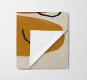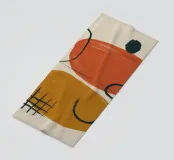 Una composizione astratta e minimalista di forme organiche in terracotta, beige e nero, con dettagli strutturati. Lo stile è moderno, terroso ed equilibrato.