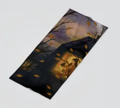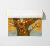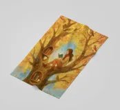 Bellissima illustrazione atmosferica di una ragazza che legge su un albero autunnale