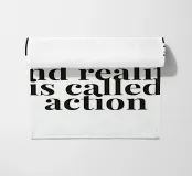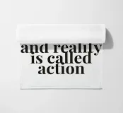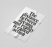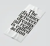 "Le parole 'La distanza tra i sogni e la realtà si chiama azione' sono disposte in un layout tipografico di grande impatto visivo, che sottolinea il potere di agire per raggiungere gli obiettivi. Il testo è audace e d'impatto, su uno sfondo pulito e minimalista, che crea un senso di motivazione e determinazione",