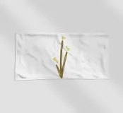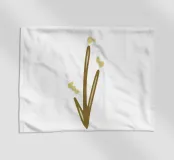 A simple brown line drawing represents a plant with three branches and small shapes resembling leaves or buds. The minimalist style and neutral colors give it an abstract feel.