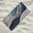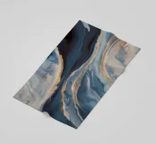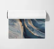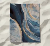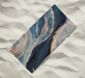 I blu marmorizzati fioriscono con calore come una marea che incontra una riva dorata.