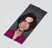 Illustrazione caricaturale umoristica del noto attore americano Timothee Chalamet. Una delle caricature realizzate per la serie Celebrity Sunday, in cui un personaggio famoso viene ritratto nell'arco di una giornata. L'idea è di mostrarli come in una fototessera per avere coerenza.