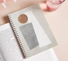 Forme geometriche astratte e rustiche con texture e colori tenui.