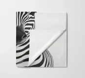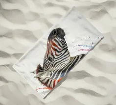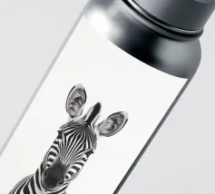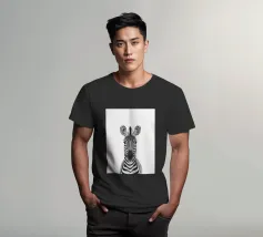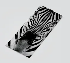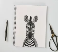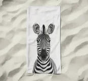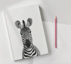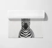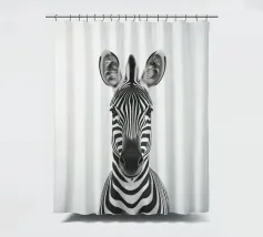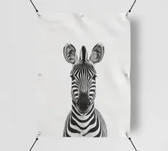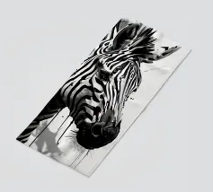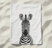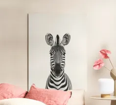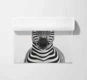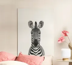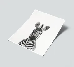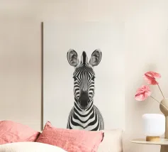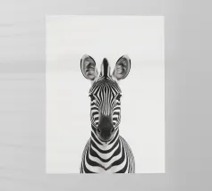 Questo simpatico primo piano di una zebra presenta il caratteristico motivo zebrato e gli occhi espressivi in uno stile minimalista e monocromatico. Perfetto per i bambini e gli amanti degli animali!