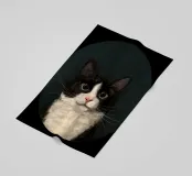 Uno sciocco ritratto di gatto in bianco e nero dipinto in stile cartoon dutch master.