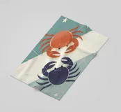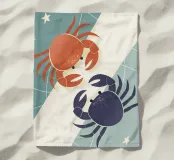 Allegra illustrazione con due granchi dai colori diversi che interagiscono, irradiando lo spirito di una vita marina unica e interessante.