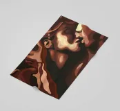 È un'opera d'arte di grande impatto! Lo stile è fortemente astratto, con colori ricchi, caldi e stratificati e forme fluide.