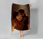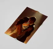 Sensual Couple Embracing in Golden Light This image captures a couple in a tender, intimate dance, surrounded by warm, golden lighting and muted colors, evoking the moody, atmospheric feel of classic film noir and the nuanced, psychological portraits of Lucian Freud.