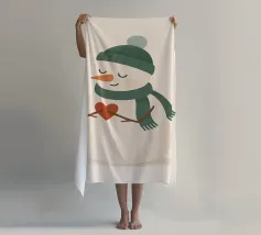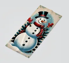 Il pupazzo di neve, completo di sorriso amichevole, naso a carota e braccia a ramoscello, aggiunge un tocco di allegria a una serena atmosfera invernale, perfetta per le decorazioni stagionali.
