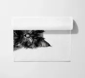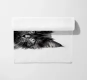 Un simpatico gattino dice "Ciao" in un'illustrazione minimalista, perfetta per gli amanti degli animali. Il suo ritratto in bianco e nero donerà gioia e fascino a qualsiasi parete artistica.