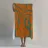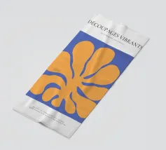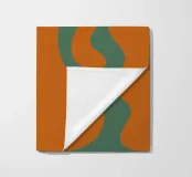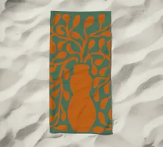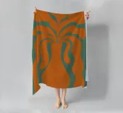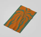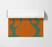 Un vaso stilizzato dalle forme astratte e fluide si estende verso l'esterno, ricordando forme vegetali. Il colore arancione vibrante contrasta con lo sfondo verde tenue, creando un effetto visivo dinamico.