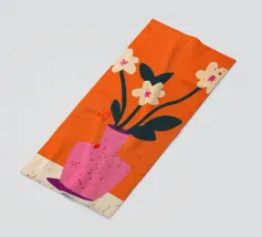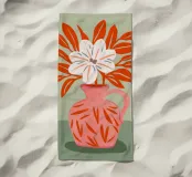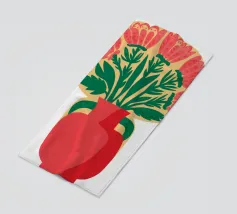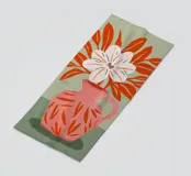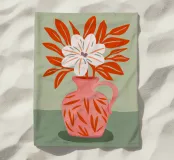 Un'illustrazione elegante e minimalista di un semplice vaso che contiene un bouquet di papaveri rossi e arancioni, che mette in risalto la semplice bellezza dei fiori.