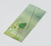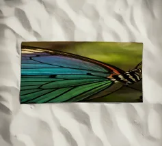 Le ali sono sottili e aggraziate, con disegni sottili e intricati che catturano la luce del sole e si illuminano dolcemente. Quando atterra su una foglia, quasi scompare tra il verde, integrandosi perfettamente con la natura circostante. I suoi movimenti delicati danno un tocco di tranquilla magia al giardino.