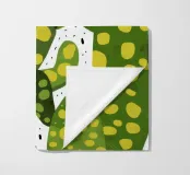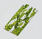 Un disegno stilizzato e ravvicinato di un cactus fico d'India mostra i suoi cuscinetti verdi e le sue macchie gialle in un disegno grafico e vibrante, che cattura la consistenza unica della pianta del deserto.