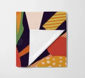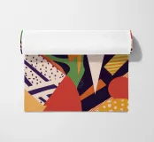 A dynamic and vibrant collage of different abstract patterns and textures, featuring stripes, speckles, and solid color blocks in a rich palette, creating an energetic and modern artwork.