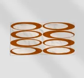 Questo motivo ad anelli retrò arancione bruciato trasmette un'energia calda e nostalgica, ispirata all'arredamento eclettico degli anni '60 e '70. Le sue curve geometriche fluide creano una dichiarazione audace ma accogliente, perfetta per stampe d'arte, tessuti e interni moderni e retrò.