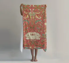 Un elegante motivo damascato vintage caratterizzato da ornati motivi floreali rossi e crema in stile vittoriano con intricati dettagli barocchi. Questo lussuoso disegno cattura l'opulenza della carta da parati damascata tradizionale con il suo ricco sfondo rosso e gli elaborati motivi ornamentali beige. Perfetto per gli amanti dell'eleganza vintage, per i fan dell'estetica vittoriana, per gli appassionati di barocco e per tutti coloro che apprezzano la raffinatezza senza tempo dei motivi damascati classici e la grandezza storica.