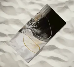 I massicci tratti in bianco e nero si intersecano con la feroce energia dorata in archi audaci ed emotivi.