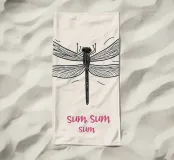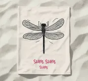 Questa allegra illustrazione di una libellula con l'arguto testo rosa "Sum Sum Sum" cattura la leggerezza e la giocosità della natura in modo minimalista.
