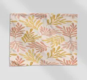 A playful and airy botanical pattern featuring hand-drawn branches in warm mustard yellow and soft coral tones against a creamy background. This modern nature-inspired design is perfect for cozy, boho interiors, adding a touch of softness, warmth, and organic charm to any room.
