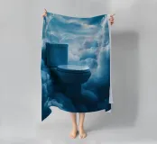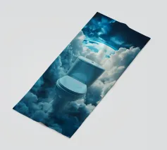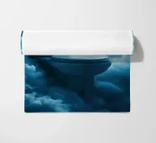 Un luogo tranquillo di relax galleggia sopra le nuvole: questa opera d'arte surreale mostra una moderna toilette circondata da un maestoso paesaggio nuvoloso. La scena ha un effetto quasi meditativo e simboleggia un ritiro dalla vita quotidiana che avviene in un luogo del tutto inaspettato. I toni tenui del blu, insieme all'atmosfera estasiata, conferiscono all'immagine una calma quasi divina. Quest'opera combina in modo insolito umorismo, simbolismo e mondo dei sogni.