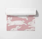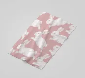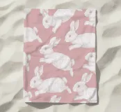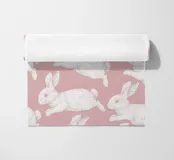 Incantevoli illustrazioni di coniglietti bianchi su uno sfondo rosa tenue, perfette per progetti simpatici e giocosi.