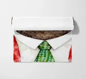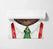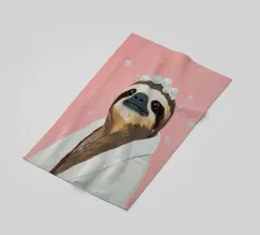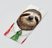 Un bradipo lento e costante, vestito in modo ordinato in ufficio, che porta con sé una calma sicurezza sul posto di lavoro.