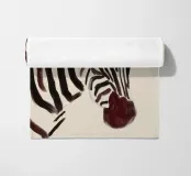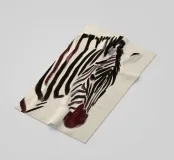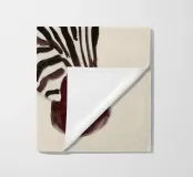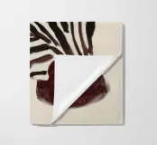 A simple portrait of a zebra, with bold stripes painted in soft, earthy tones