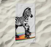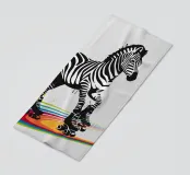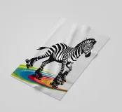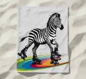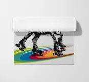 Un motivo creativo e dinamico di una zebra sui pattini a rotelle, raffigurata in uno stile moderno di stencil. Le strisce bianche e nere della zebra sono completate da piste a rotelle colorate, che conferiscono al disegno un aspetto vibrante ed energico. Ideale per gli amanti dell'arte che desiderano combinare divertimento, movimento e arte urbana.Zebra con pattini a rotelle: motivo animale unico e spiritoso. Stile stencil: look moderno in bianco e nero con accenti di colore vivace. Dinamica vivace: rappresentazione del movimento attraverso piste a rotelle colorate.