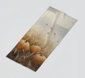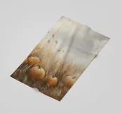 Zucche vivaci sparse in un campo erboso sotto un cielo nuvoloso, con alti fiori bianchi sullo sfondo. Cattura l'essenza dell'autunno.