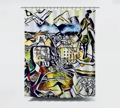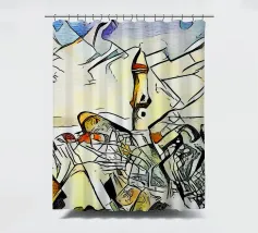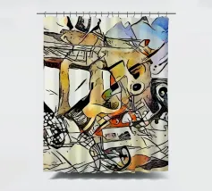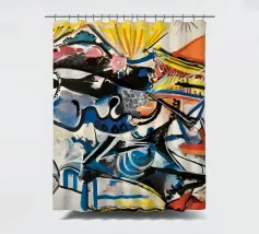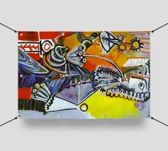 Questo dipinto astratto vibrante ed energico presenta un gioco dinamico di forme frammentate e linee audaci, con una ricca tavolozza di arancioni, gialli, viola e blu. La composizione suggerisce elementi decostruiti, forse figure o oggetti, in un movimento vorticoso ed energico, caratteristico delle influenze cubiste ed espressioniste astratte. I dettagli intricati e i colori contrastanti creano un'esperienza visiva accattivante e stimolante. Questo poster digitale di alta qualità (7000x5000 pixel, 300 dpi) cattura magnificamente l'energia grezza e il genio artistico dell'originale, ma