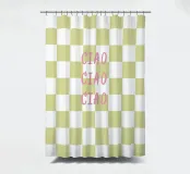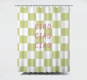 scritta ciao ciao ciao su motivo a quadri color pistacchio.
