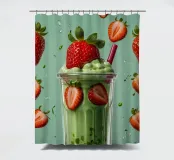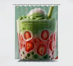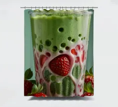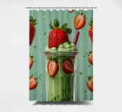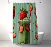 Un rinfrescante frullato verde menta con fragole fresche, servito in un elegante bicchiere, che crea una deliziosa e vivace delizia estiva.