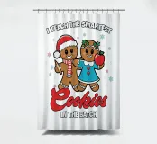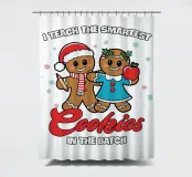 Due sorridenti biscotti di pan di zenzero sono vestiti a festa, uno con un cappello da Babbo Natale e l'altro con una mela in mano. La frase "Insegno ai biscotti più intelligenti del lotto" è stampata intorno a loro, aggiungendo un tema giocoso ed educativo.