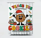 Un allegro biscotto con un cappello da Babbo Natale è circondato da decorazioni festive, libri e cioccolata calda. La scritta "Insegno ai biscotti più intelligenti #tistheseason" aggiunge un messaggio giocoso e a tema natalizio.