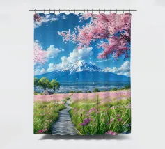 Una vista mozzafiato del maestoso Monte Fuji che si staglia nel cielo limpido di primavera. In primo piano, delicati fiori di ciliegio (sakura) danzano nel vento, conferendo alla scena una poetica leggerezza. La combinazione tra la forza della natura e la bellezza dei fiori simboleggia la transitorietà, l'armonia e il profondo legame tra la cultura giapponese e la natura. Questa immagine cattura perfettamente la magia della stagione della fioritura dei ciliegi, ideale per opere d'arte da parete, calendari o diari di viaggio. Suggerimento: perfetto per tutti coloro che sognano di viaggiare o che vogliono portare un pezzo di tranquillità e di estetica giapponese nella loro casa.